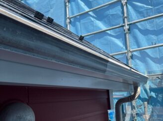 破風・樋の1回目塗装後です。2回塗装して仕上げます。