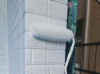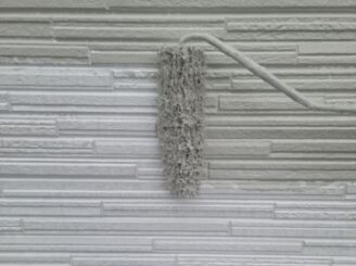 外壁の下塗りです。下塗りをしっかり行う事で、塗装の仕上がりや耐久性を高めます。