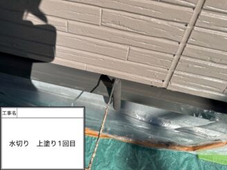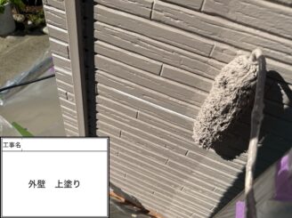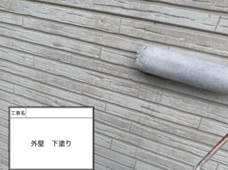 外壁の下塗りです。下塗りをしっかり行う事で、塗装の仕上がりや耐久性を高めます。